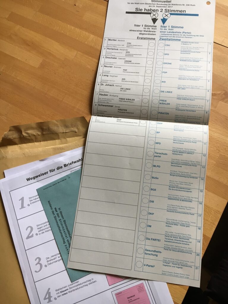 05.09.2017 Posted on5. September 201710. Oktober 2025AutorTM Heute sind die Briefwahlunterlagen für die Wahl zum Deutschen Bundestag angekommen: