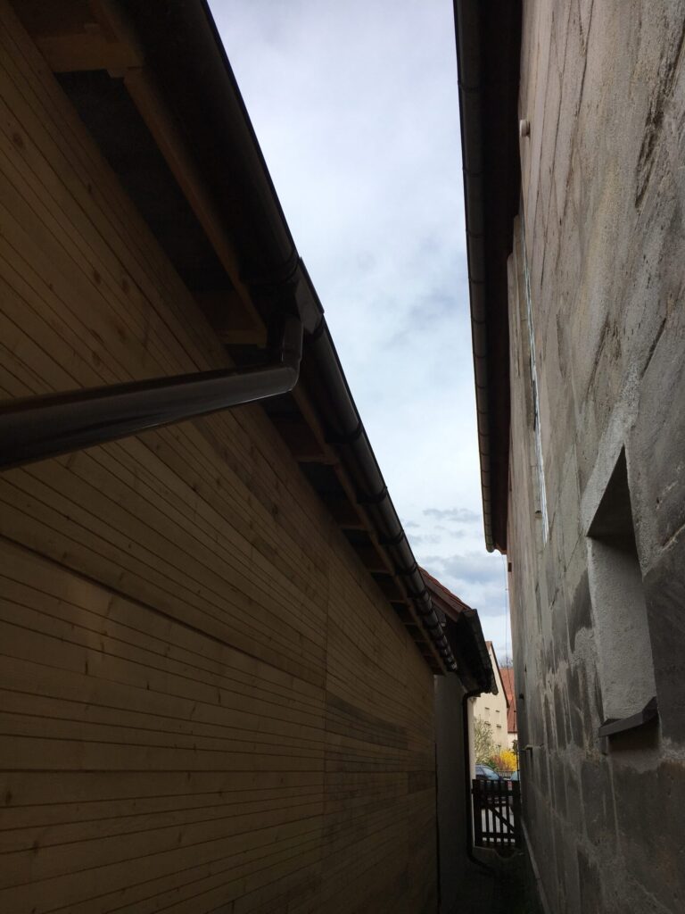 Heute war die Dachrinne am Schuppen dran. Trotz der Hoffnung, dass es nicht all zu viel regnet in der nächsten Zeit, wurde heute die Entwässerung erstellt. Der Ablauf bekommt in naher Zukunft noch eine Regentonne, dass das Wasser auch noch einen Sinn hat …