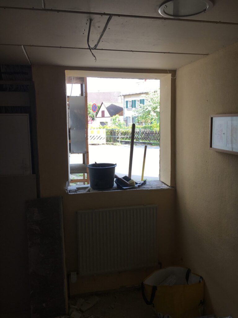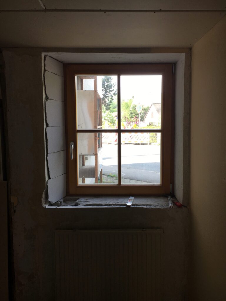 Fenster eingebaut. Um die Erdgeschoss-Fenster in der gleichen Große zu haben, muss nun die Fensteröffnung angepasst werden