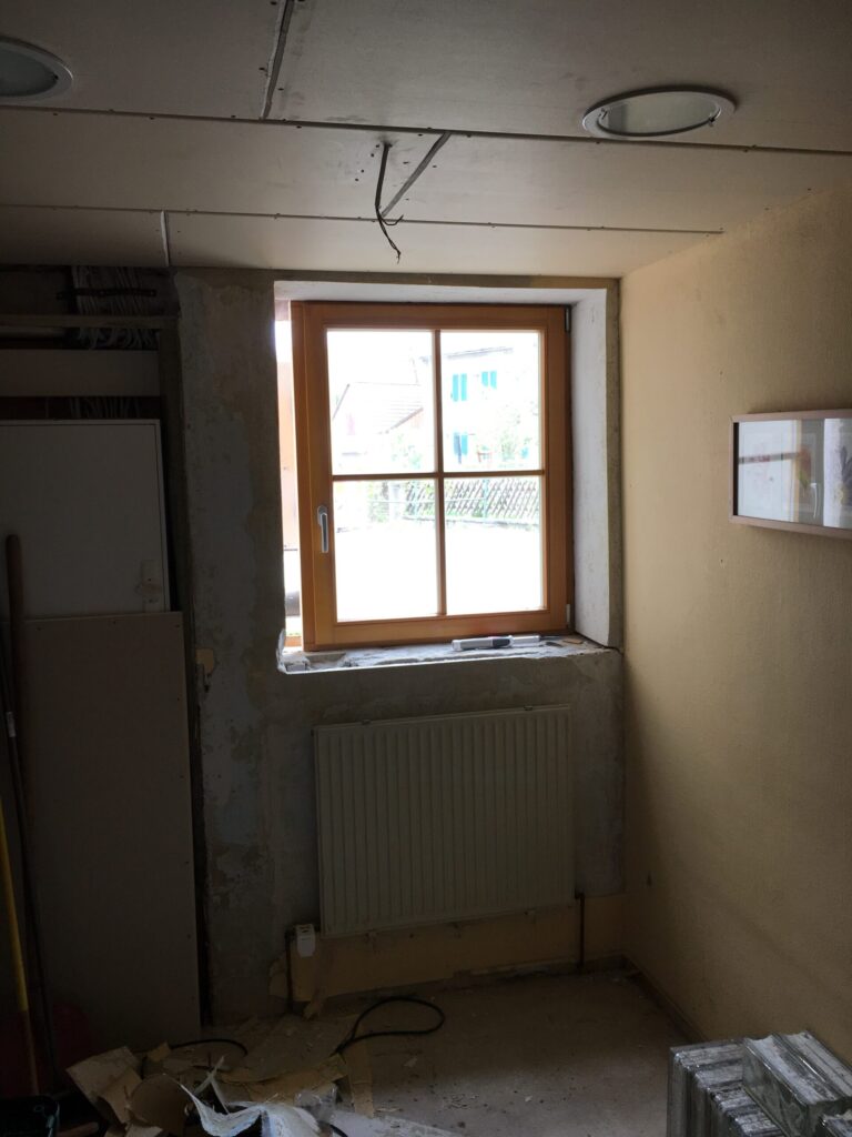 Da diese Glasbausteine überhaupt nicht zum Charakter des Hauses passen, wurden diese nun durch ein Holzfenster, passend zu den anderen Fenstern, die wir bei der Renovierung vor vier Jahren eingebaut haben, ersetzt.