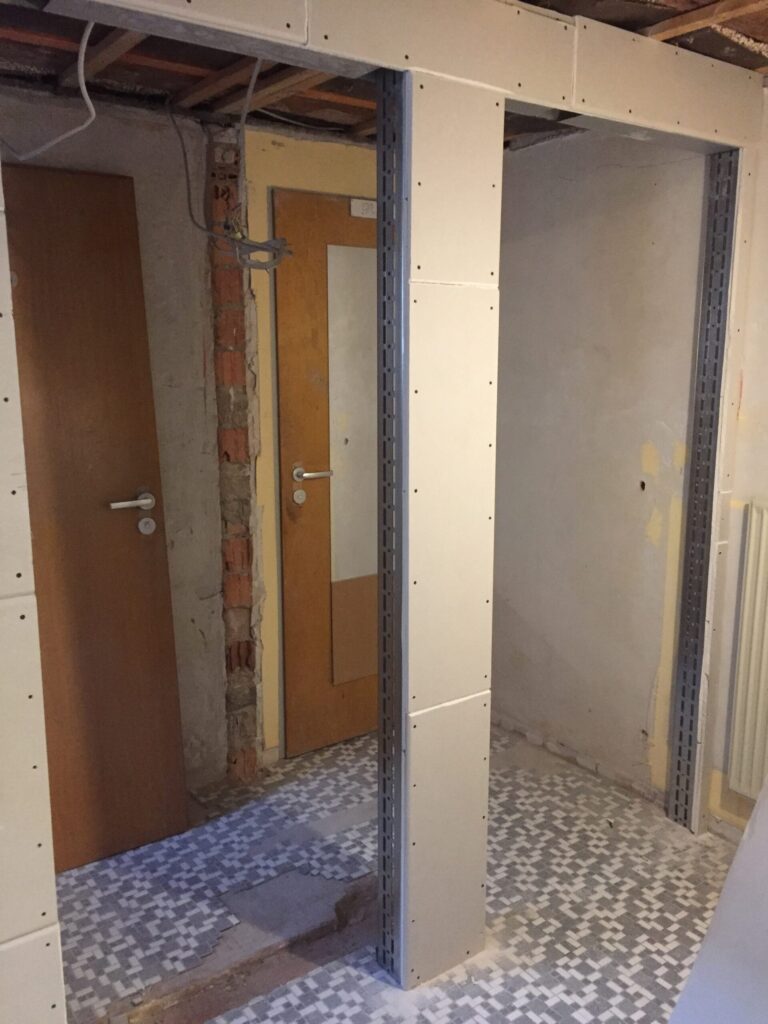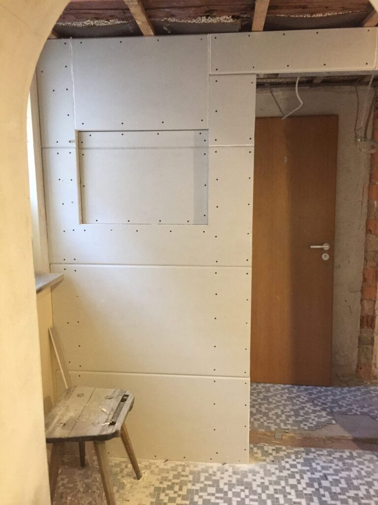 Heute wurde der Abriss soweit abgeschlossen. Die restlichen Teile der Wand und die Deckenverkleidung wurde restlos entfernt.