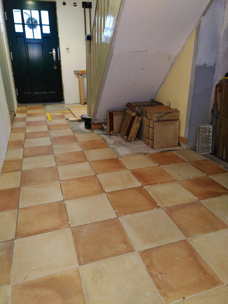 06.02.2020 Posted on6. Februar 202010. Oktober 2025AutorTM Heute wieder einen freien Tag genutzt, um mit den Bodenfliesen im Flur weiterzumachen.