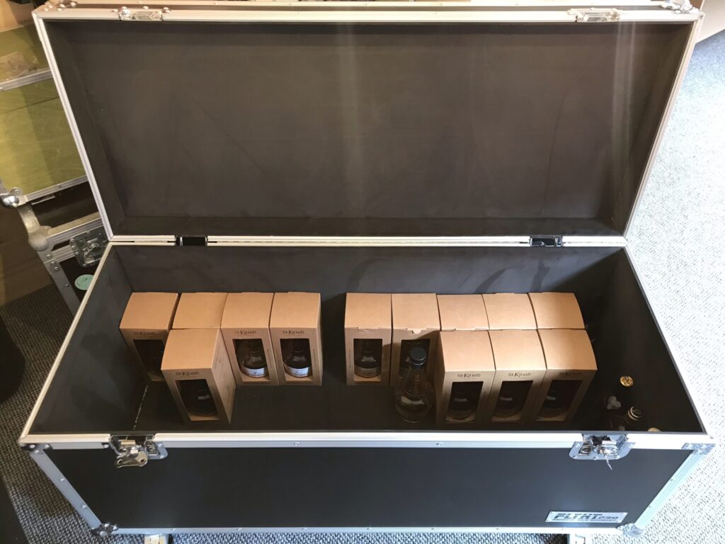 Der Inhalt des „Tisches“ der Sitzecke, eine kleine Ansammlung von Hochprozentigem.