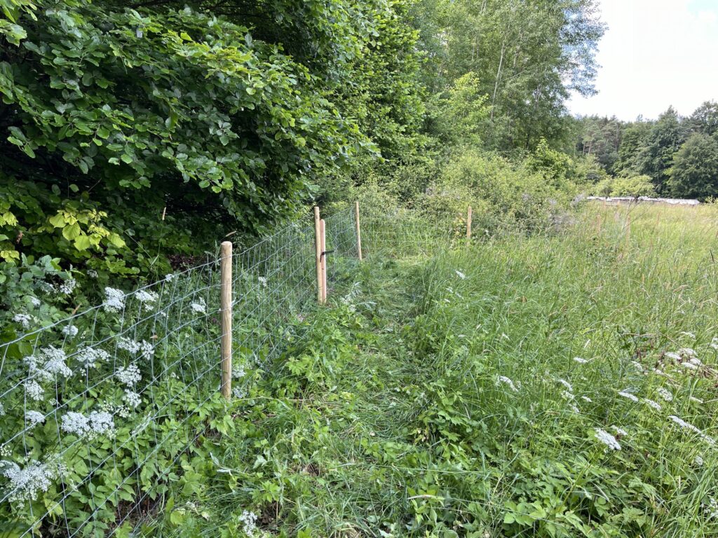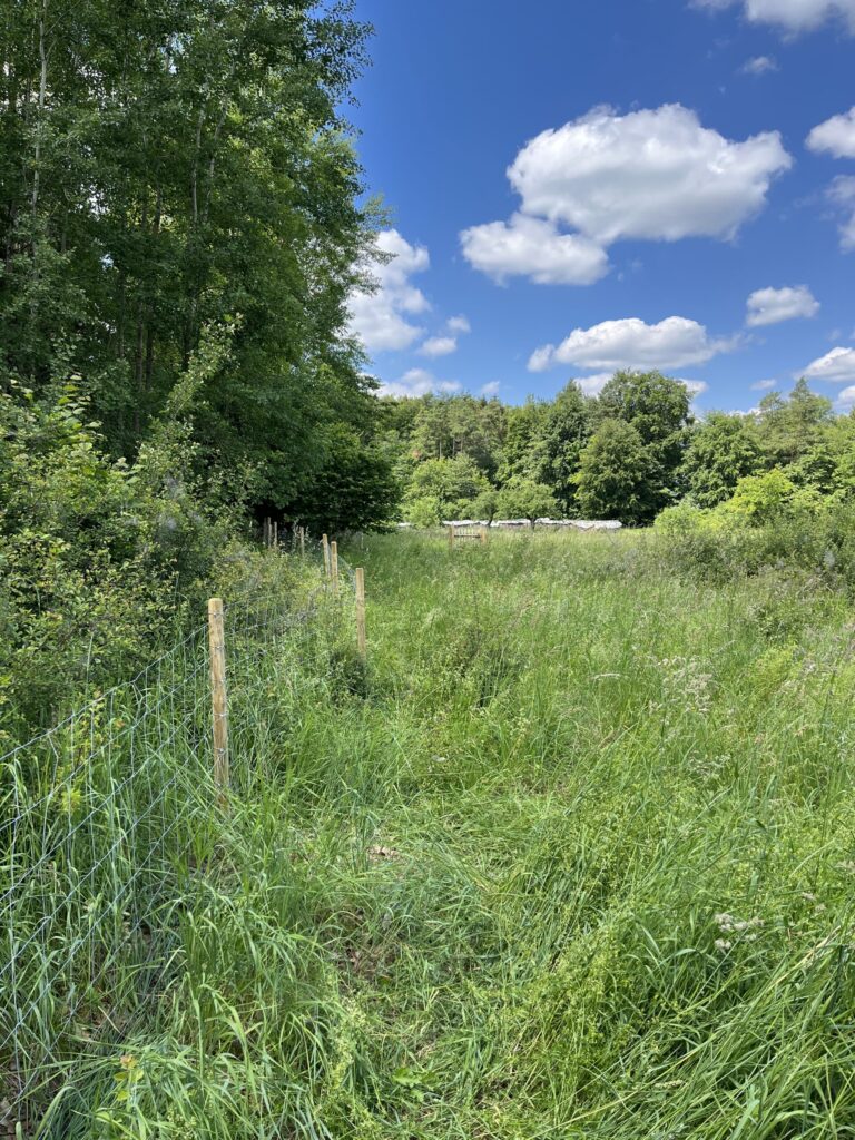 Endlich ist der Zaun fertiggestellt. Insgesamt ca. 240 m Wildfangzaun gestellt. Jetzt können wir über die Obstbäume nachdenken, die wir am Grundstück pflanzen wollen.